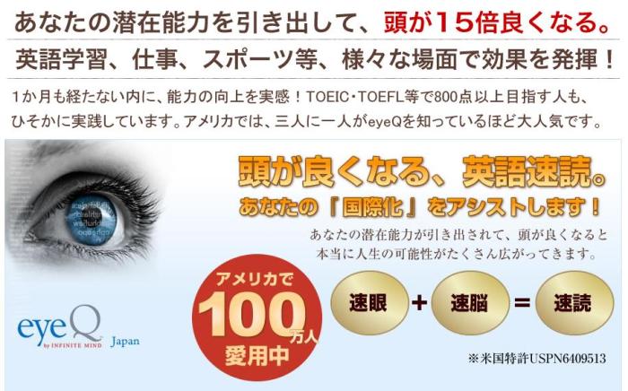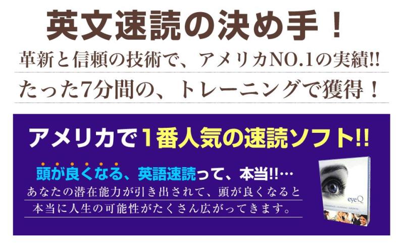右脳を覚醒させ、脳の活動を7〜15倍も増大させるのです。脳が活性化する事によって、あなたの潜在能力が発揮されるようになり、日常生活のあらゆる事が変わります!eyeQ+速脳速読術(日本語)